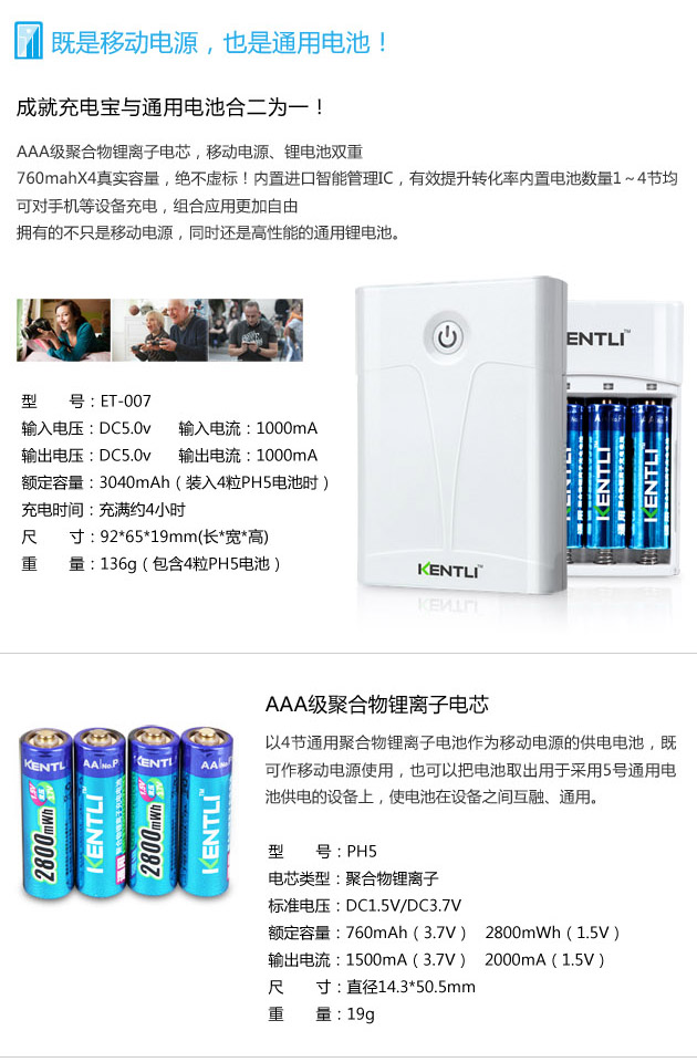 ET-007多功能移动电源可以用普通的干电池或镍氢电池代替吗?